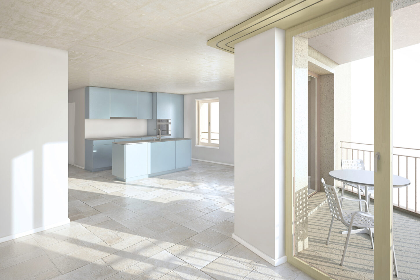 Die Wohnungen orientieren sich mehrheitlich nach Süden, zum Park der Villa Fischer. Der kompakte Baukörper schafft Freiraum, um die Villa und den Garten langfristig zu erhalten. Grosszügige Loggien, direkte Gartenzugänge und vielfältige Grundrisstypen – von 2½- bis 5½-Zimmer-Wohnungen – prägen die Architektur. Einige Einheiten sind zweiseitig ausgerichtet und erhalten zusätzlich Licht über den begrünten Innenhof.