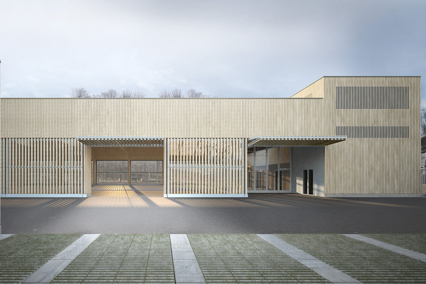 Durchlässiges Holzkleid als „offener Schopf“