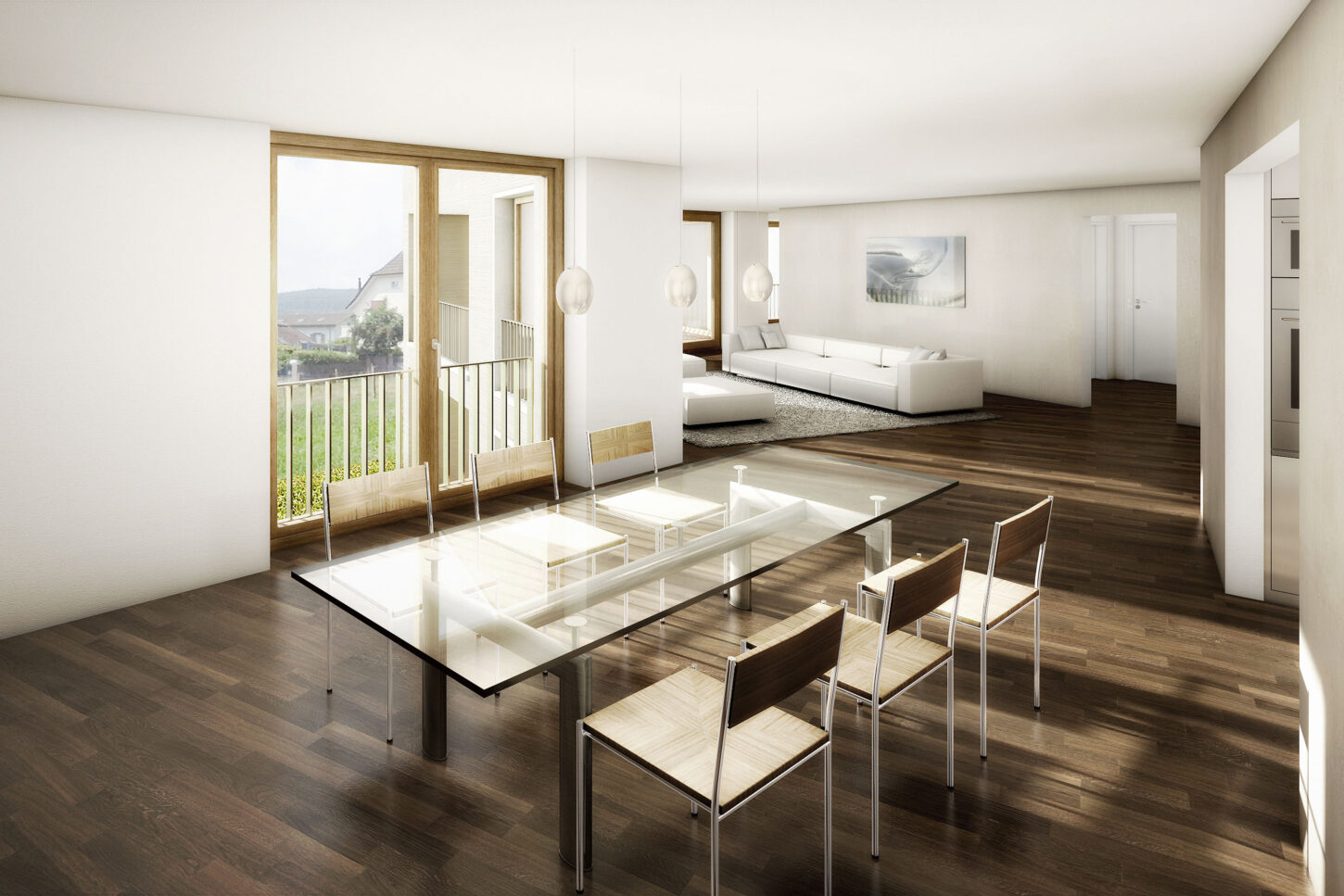 Wohnflügel mit Raumabfolge Essen-Wohnen-Loggia