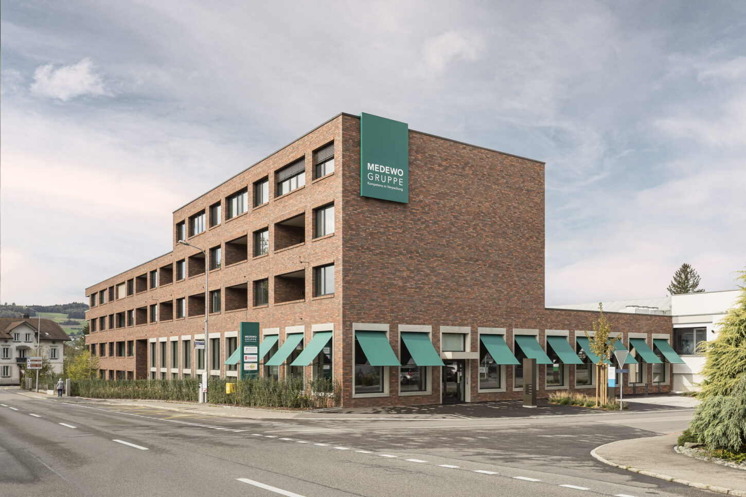 Der neue Hauptsitz der MEDEWO GRUPPE ist Teil der Gesamtüberbauung am Meierhofweg. Für das regional verankerte und international tätige Verpackungsunternehmen entstanden entlang der Bahnhofstrasse rund 2’000 m² Büro- und Gewerbefläche.