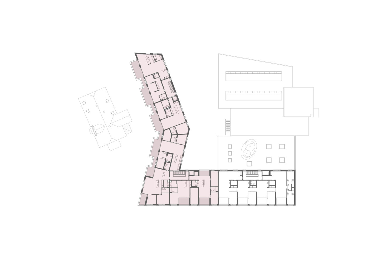 Im Rahmen der Machbarkeitsstudie wurde untersucht, wie ein Restaurant innerhalb eines historischen Bestands mit einem kleinen Businesshotel ergänzt werden kann.